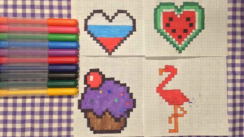 "По клеточкам в тетради для начинающих красивые" - рисунки