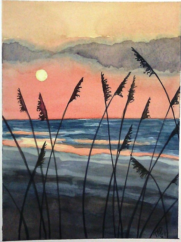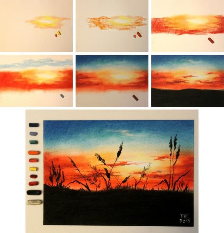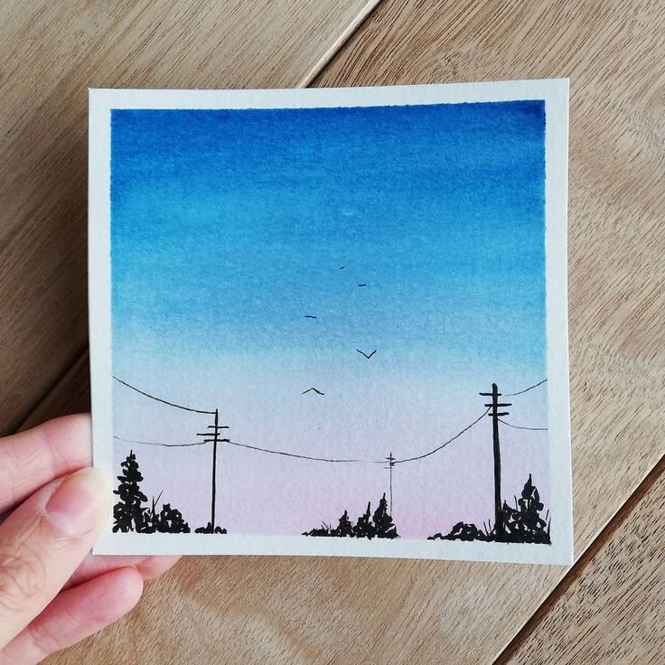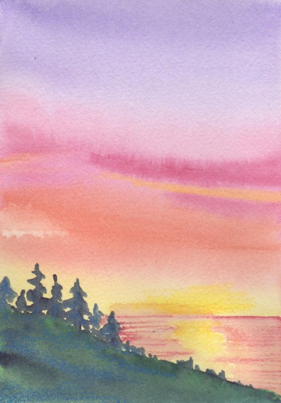 "Закат акварелью легкий простой для начинающих" - рисунки