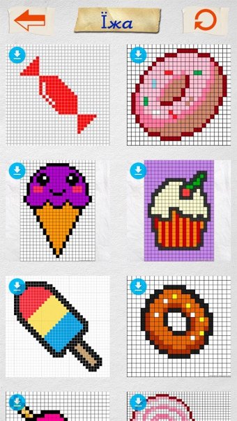 "По клеточкам еда и напитки маленькие" - рисунки