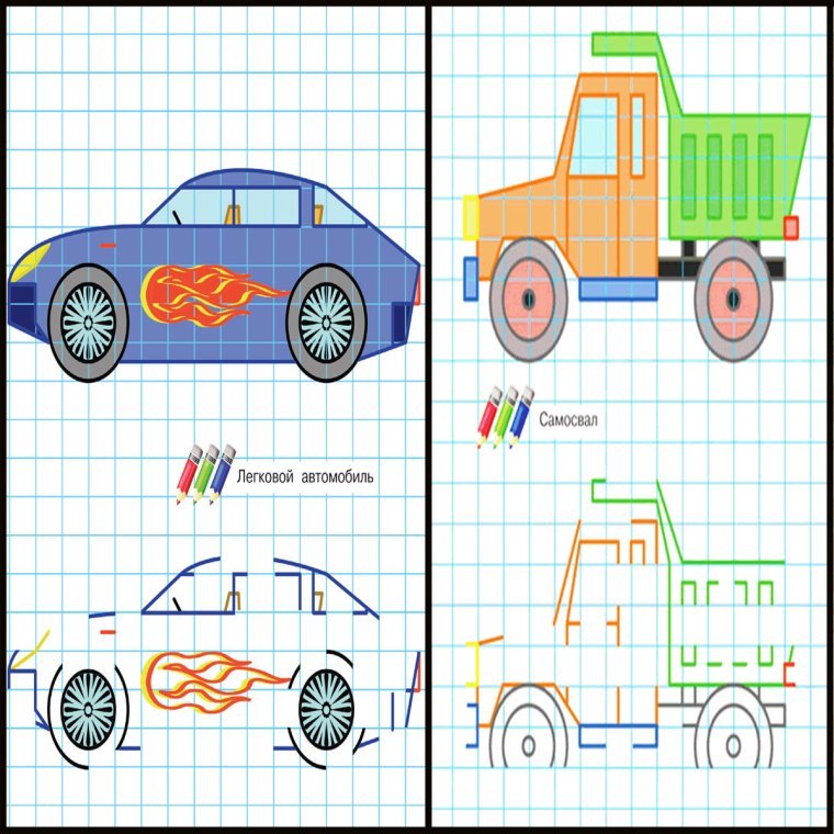 "По клеточкам автомобили легкие" - рисунки