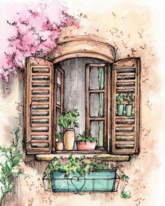 "Арт окно в старом" - рисунки