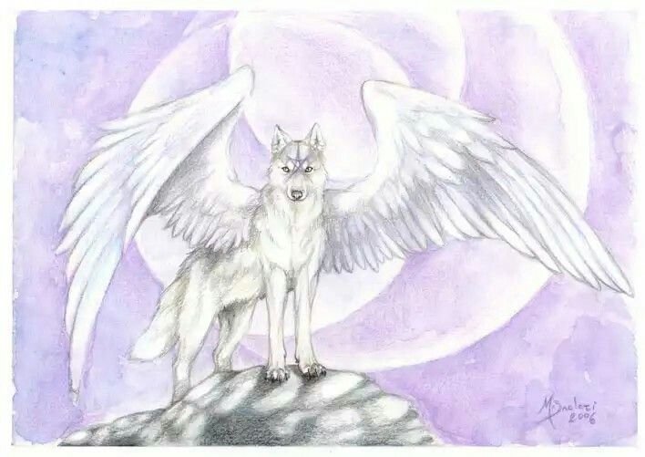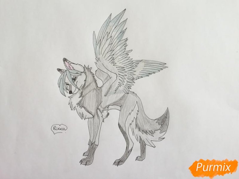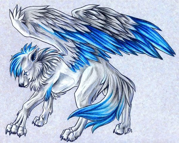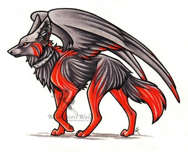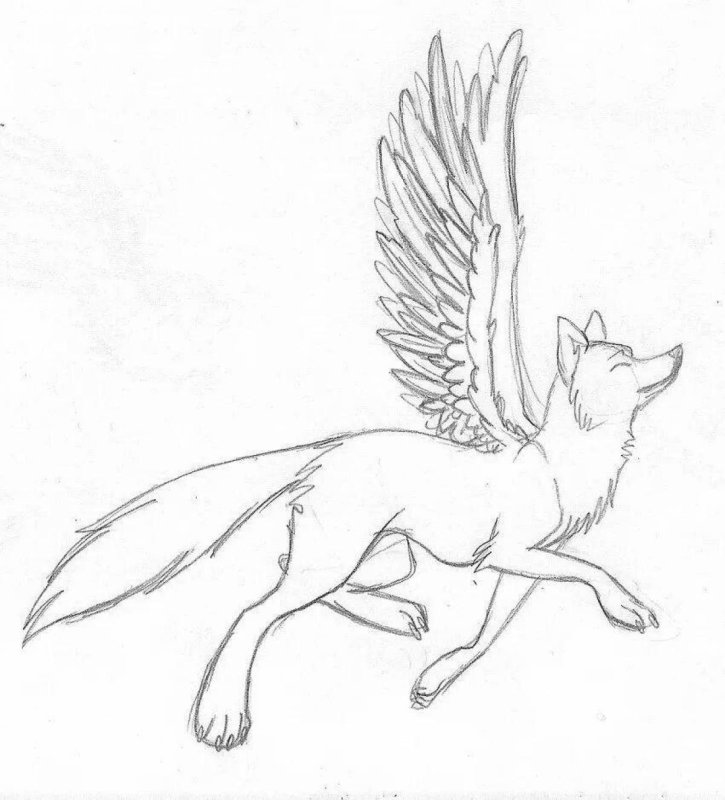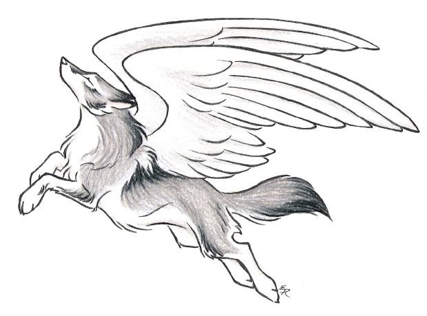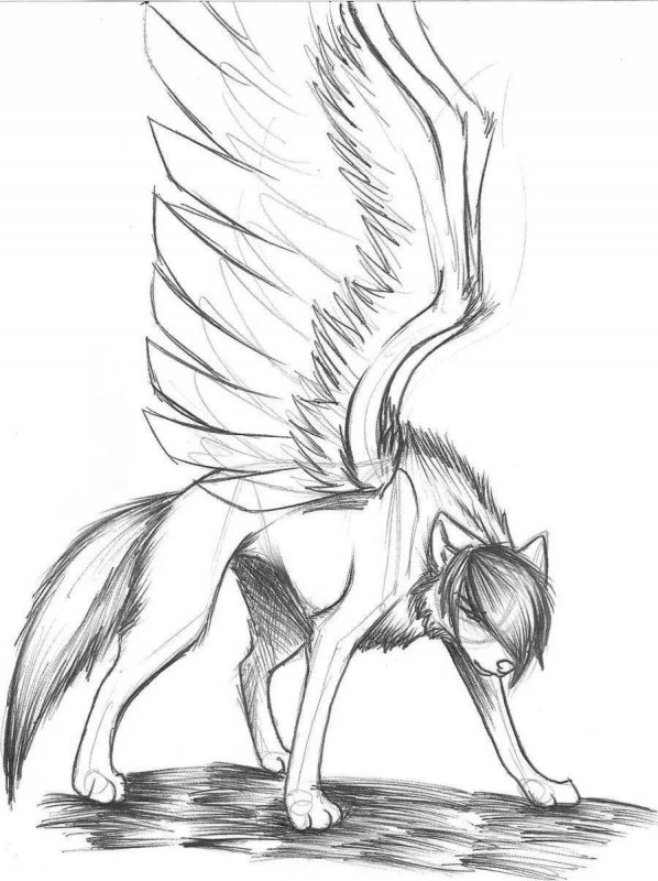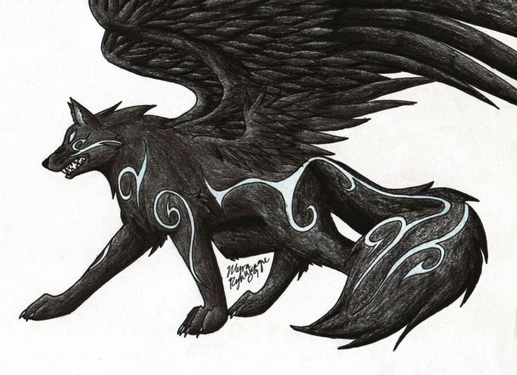 "Арт волк с крыльями" - рисунки