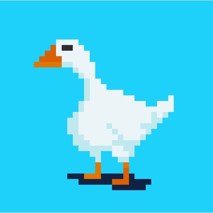 Пиксель арт гусь - это уникальный способ изображения, который сочетает в себе пиксели и искусство. Гусь, созданный в таком стиле, обладает особым очарованием и неповторимым видом. Каждый пиксель в этом произведении искусства тщательно расположен на своем месте, чтобы создать четкое и детализированное изображение гуся. Такие работы являются прекрасным выбором для любителей пиксельного искусства или для тех, кто хочет придать своему интерьеру оригинальности и уникальности. Пиксель арт гусь будет прекрасным украшением вашего дома или подарком для ценителей искусства.